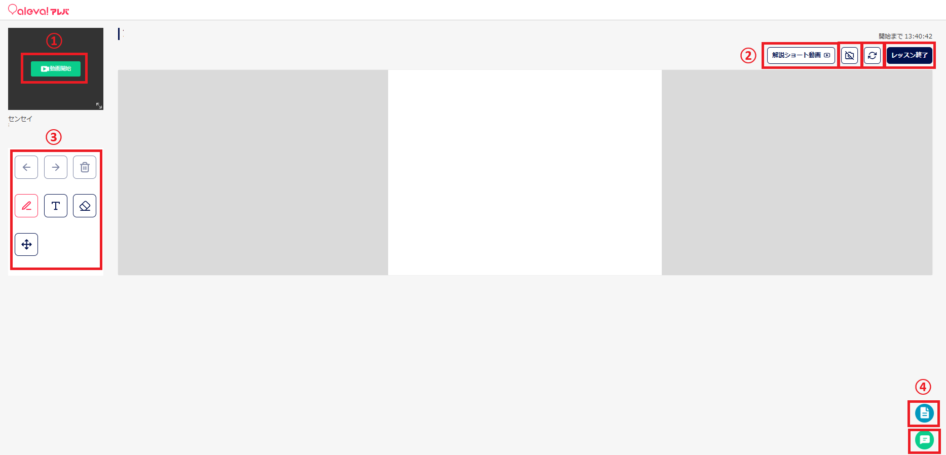 レッスン時間になりましたら、画面左側の「動画開始」ボタンをクリックすると講師と接続してレッスンが開始します。